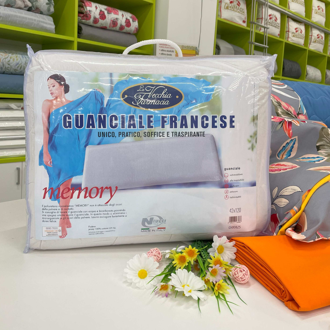 In StockCusciniCuscini semirigidiCuscini Memory FoamGuanciale Francese €79 A partire da: €79 Prodotto acquistabile con Bonus Mobili Pagamenti rateali personalizzati Richiedi Preventivo GUANCIALE FRANCESE €79 Guanciale Francese €79 quantità Aggiungi al carrello Categorie: Cuscini, Cuscini Memory Foam, Cuscini semirigidi Condividi: mail_outline Caratteristiche tecniche Guanciale Francese in Memory Il Guanciale Francese in Memory è la soluzione perfetta per chi cerca il massimo comfort durante il riposo, specialmente per chi possiede un letto alla francese. Con le sue dimensioni generose di 42×120 cm, questo guanciale è progettato per adattarsi perfettamente a letti di larghezza intermedia, offrendo un supporto uniforme e continuo per due persone. Realizzato in memory foam di alta qualità, il cuscino è automodellante e indeformabile, in grado di adattarsi alla forma del capo e del collo per un sostegno ottimale della colonna cervicale. Il materiale memory ha proprietà antibatteriche e antiacaro, rendendolo una scelta eccellente per chi soffre di allergie o vuole semplicemente dormire in un ambiente più sano e igienico. Il guanciale si distingue anche per la sua elevata traspirabilità: grazie alla struttura a cellule aperte del memory e alla fodera in 100% jersey di cotone, il passaggio dell’aria è costante, evitando l’accumulo di umidità e calore durante la notte. La fodera, inoltre, è sfoderabile e lavabile grazie alla comoda chiusura con zip, garantendo una facile manutenzione e una lunga durata nel tempo. Tra i principali vantaggi del nostro Guanciale Francese ci sono: Soffice e accogliente, ma con il giusto grado di sostegno Pratico e igienico, grazie alla fodera removibile Anallergico e antiacaro, ideale per soggetti sensibili Indeformabile e durevole, mantiene la forma nel tempo Perfetto per letti alla francese, misura 42×120 cm Che tu lo utilizzi come cuscino unico per dormire in coppia o per goderti momenti di relax e lettura a letto, il Guanciale Francese in Memory rappresenta una scelta intelligente e di qualità. Il design essenziale e funzionale si integra facilmente con ogni tipo di biancheria da letto, offrendo un tocco di comfort extra ogni giorno. testttt Mondoflex 4.8Basato su 2889 recensionipowered by Googlelascia una recensione suIngrid M.16:29 03 Mar 26Ottimo connubio qualità prezzoCordialità e professionalitàChiedete di Linda molto preparata ed sempre sul pezzo per quanto riguarda le scelterobi R.12:51 03 Mar 26Espresse le nostre richieste per l'acquisto di un materasso matrimoniale e di due singoli, ho trovato gentilezza, professionalità e chiarezza nella Sig.ra Linda che mi ha consigliato sulla scelta dandomi tutte le informazioni necessarie per l'acquisto di prodotti sicuramente di qualità. Avevo già in passato acquistato un materasso presso Mondoflex. Pienamente soddisfattoAlberto C.16:34 27 Feb 26Ho sostituito materasso acquistato tempo fa alla sede di Treviolo con uno in nuovo in memory. Prodotti con ottimo rapporto qualita' prezzo e personale preparato e cordiale. Consigliatissimo.Simona G.13:29 27 Feb 26esperienza ottima, ci siamo trovati bene con RosalbaPassaggi chiari e precisi. Tempi rispettatiPrima notte con nuovo materasso e rete: super!!! Grazie a tutto lo staff!!Alberto G.20:57 26 Feb 26Ci siamo recati allo show-room domenica alla ricerca di un letto e di un materassoSiamo stati accolti con calore da Chiara B che ci ha subito fatto sentire coinvolti nella ricerca ascoltando le nostre richieste e trovando in pochi minuti ciò che volevamoCi siamo sentiti veramente coccolati e siamo felici di aver acquistato un ottimo prodotto e non vediamo l’ora di averlo.Grazie mille a Chiara B, veramente specialeAnna S.10:30 22 Feb 26Ottima esperienza! Il venditore Davide è stato in grado di capire le mie esigenze fin da subito, con ottimi consigli, mostrando professionalità, cura del processo di vendita, attenzione e sensibilità verso il cliente.Il tutto è stato consegnato con accuratezza, velocità e agilità, rispettando tempi e modalità di consegna prestabiliti.Esperienza consigliatissima, grazie ancora a Davide e al suo staff!Marika R.22:03 21 Feb 26Esperienza molto positiva! Mi sono recata nel punto vendita per l'acquisto di un materasso e sono stata subito accolta dal Sig. Davide che si è dimostrato molto gentile, competente e disponibile per aiutarmi nella scelta del materasso! Consigliatissimo!!Silvia C.09:11 20 Feb 26Sono stata seguita dalla signora Roberta nell' acquisto di un materasso(costa).Una persona squisita, molto cordiale e disponibile in tutto.Sono stata molto soddisfatta dalla sua professionalità e simpatia. È stato un piacevole acquisto.Massimo C.17:19 19 Feb 26Buongiorno,Siamo entrati in negozio per comprare un divano letto e la sig.ra chiara p.Con professionalità ci ha fatto vedere vari divani e spiegando le nostre esigenze ci ha indirizzati su tipo di divano che effettivamente con le misure che ci aveva dato ci sta perfettamente dove vogliamo metterlo, consigliati anche su colore, tipo stoffa e cuscini.Grazie ancora chiara p.silvio M.11:13 17 Feb 26Oggi sono venuto nel vs negozio a Castel mella ed ho acquistato una poltrona alba lift 2. Sono stato seguito dal sig. Valerio , venditore molto preparato e gentile . Grazie e buon lavoroEliana P.19:05 16 Feb 26Sig.ra Roberta molto gentile e professionale.. L'unica cosa che mi ha lasciato un po perplessa è stato riguardo alla garanzia del materasso. Dato che con i miei precedenti materassi comprati in altri negozi mi davano garanzia di 10 anni, e qui molto meno nonostante ne abbia comprato uno di qualità.Massimo C.06:14 14 Feb 26Ero di passaggio e sono entrato in questo store della mondoflex . Personale gentile , disponibile e cordiale. Mi hanno fatto provare alcuni prodotti, alla fine in quel giorno non ho subito acquistato. Sono ritornato e seguito dal sig. Valerio ( persona squisita ) ho acquistato. Ora aspetto la consegna ma visto come lavorano sarà sicur